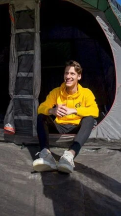 Deze tent weegt 8.9 kilo en komt in een tunnelvorm waarbij de boogstokken parallel aan elkaar lopen. Hierdoor biedt de tent relatief veel ruimte. Met een stahoogte van 180 cm kun je prima staan en jezelf binnen makkelijk omkleden. Je zet deze tent binnen 45 minuten overeind. Het duurt dus even, maar dan heb je ook wat! Je loopt de tent binnen door de voordeur óf de zijdeur, heel handig!