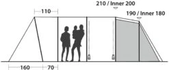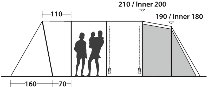 Je loopt deze tent heel eenvoudig binnen door de grote D-vormige deur óf de zijdeur. Je kunt daarnaast de tunneltent naar eigen wens indelen. Vind je het gezellig om met zijn allen in één ruimte te slapen? Of wil je juist liever twee gescheiden slaapplekken? Het is beide mogelijk, dankzij de scheidingswand in de tent.