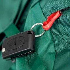 Aan de binnenkant van de voorkant vind je een vak met rits voor het opbergen van kleine dingen zoals je zonnebrand, elektronica, lippenbalsem en kleingeld. Ook vind je daar aan de bovenkant een klein doorzichtig vakje voor je ID-kaart. Hier vind je daarnaast nog een krasvrij vakje voor bijvoorbeeld je zonnebril of je telefoon en een sleutelhaakje zodat je je sleutels niet verliest. Aan de voorkant zitten 2 stretch mesh vakken voor drinkflessen. Tot slot heb je aan de binnenkant een vak voor je laptop of documenten.